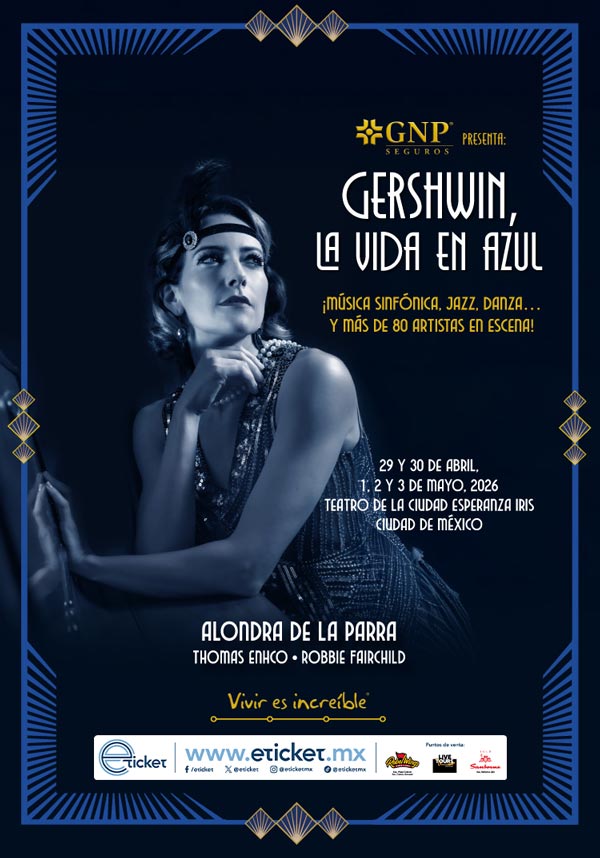 Gershwin, la vida en azul es un espectáculo multidisciplinario que rinde homenaje a la vida y obra del compositor estadounidense George Gershwin, uno de los grandes genios del siglo XX. Bajo la dirección artística de Alondra de la Parra, esta puesta en escena combina música sinfónica, jazz, teatro y danza para transportar al público a la atmósfera vibrante de los años 20 y 30 en ciudades como Nueva York y París. A través de una narrativa visual y sonora, el espectáculo reconstruye el universo íntimo y creativo de Gershwin: su hogar, sus escenarios, sus relaciones y, sobre todo, su música.